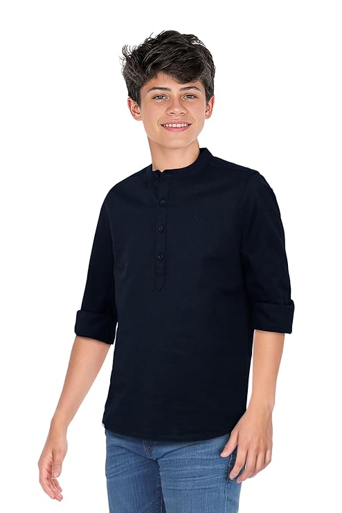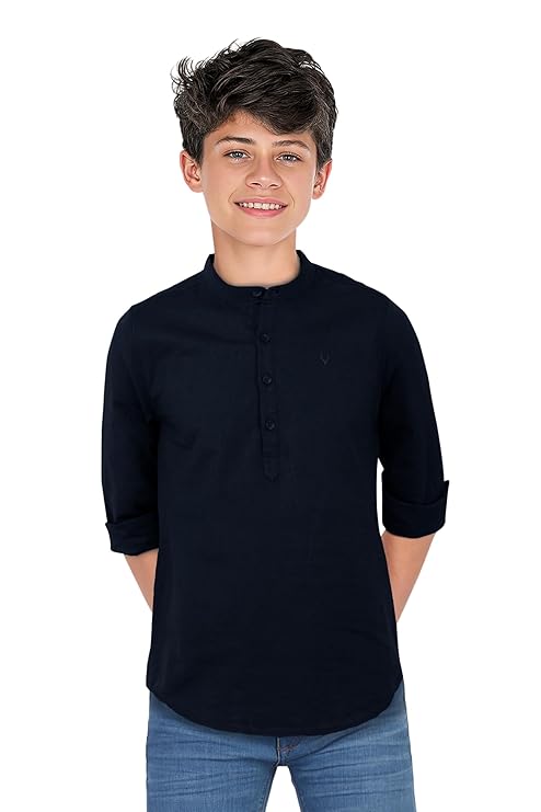 Allen Solly Boys 100% Cotton Solid Full Sleeve Mandarin Collar Shirt